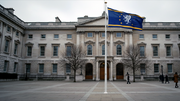 Flagge der Vereinigten Staaten von Astor vor Regierungsgebäude.jpg